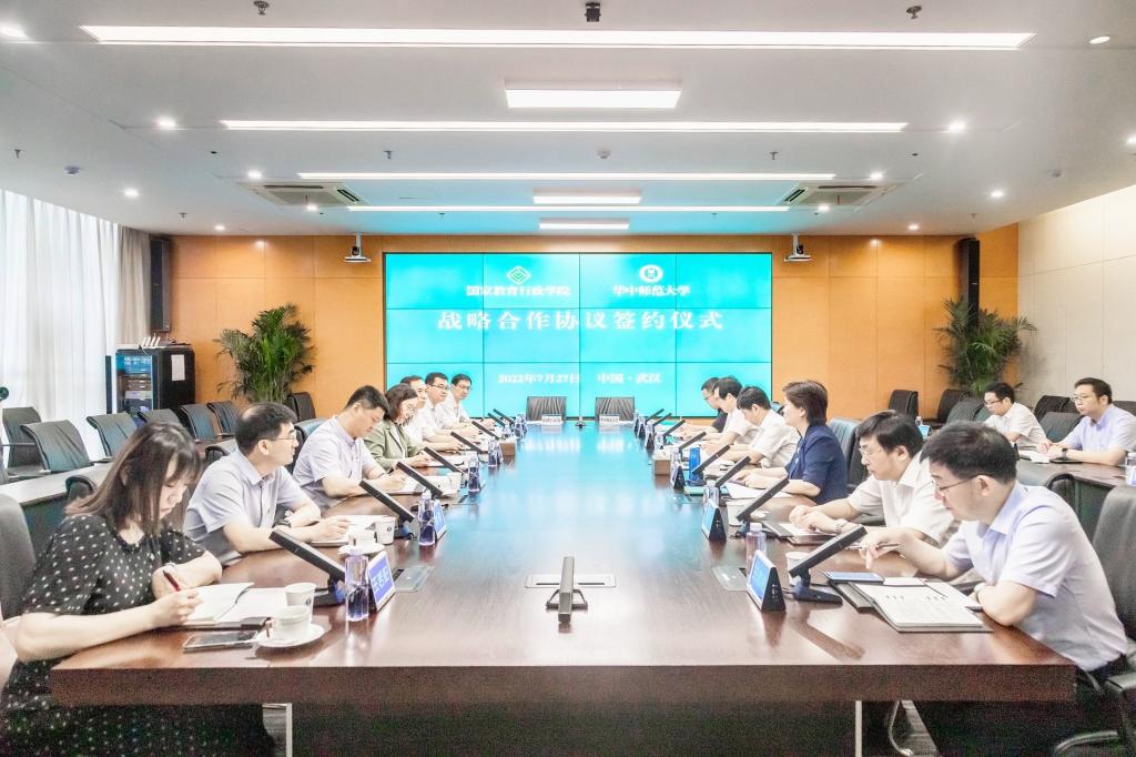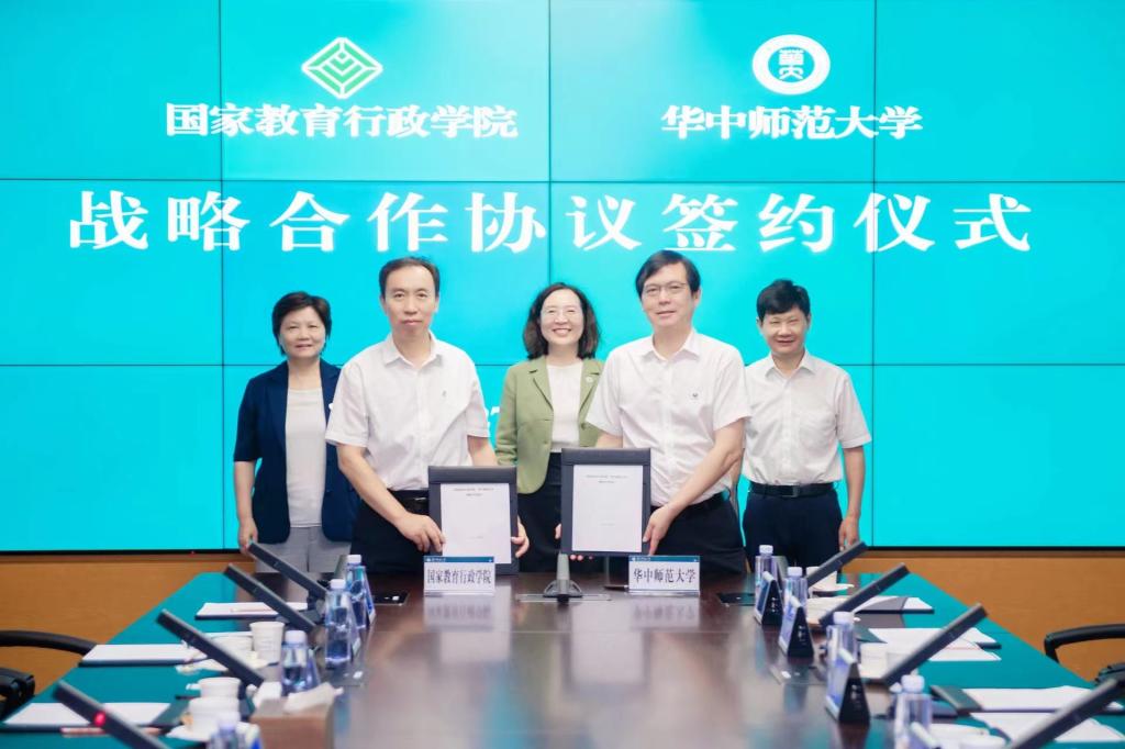 华大在线讯(记者 毛国樨)7月27日,国家教育行政学院与凯发k8官网,凯发k8网址战略合作协议签约仪式在凯发k8官网,凯发k8网址南湖综合楼举行。国家教育行政学院党委书记、常务副院长侯慧君、副院长于京天,校党委书记赵凌云、校长郝芳华、校党委副书记陈迪明出席。郝芳华主持签约仪式。