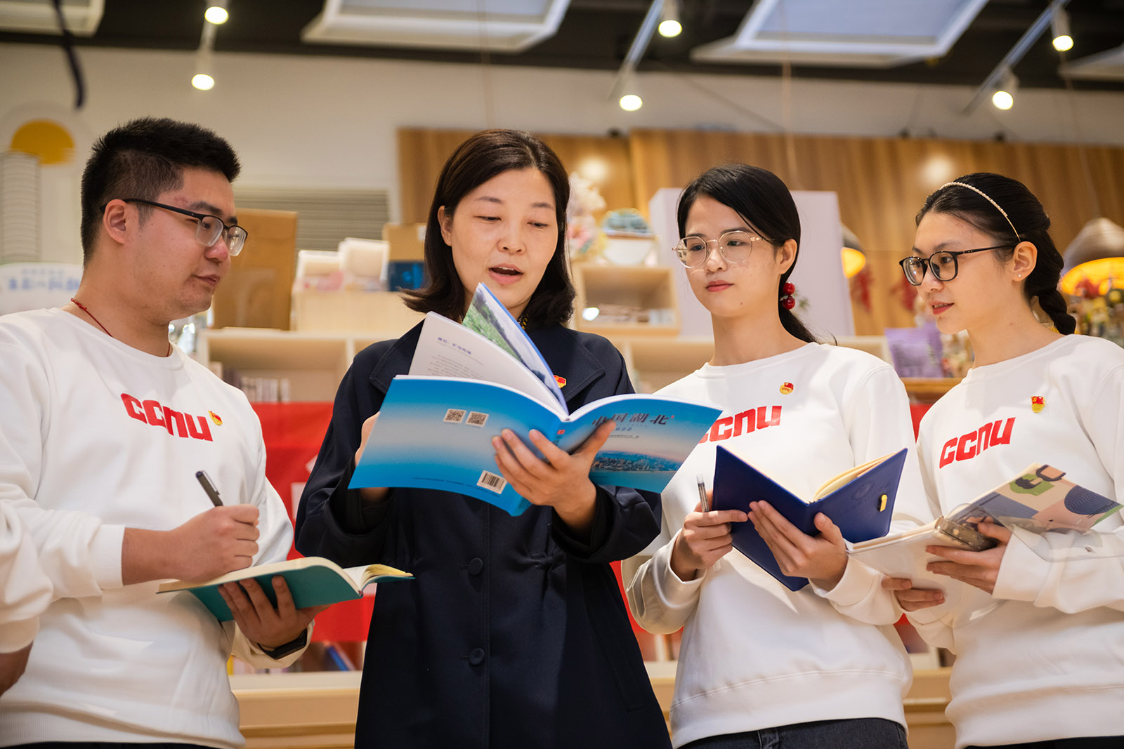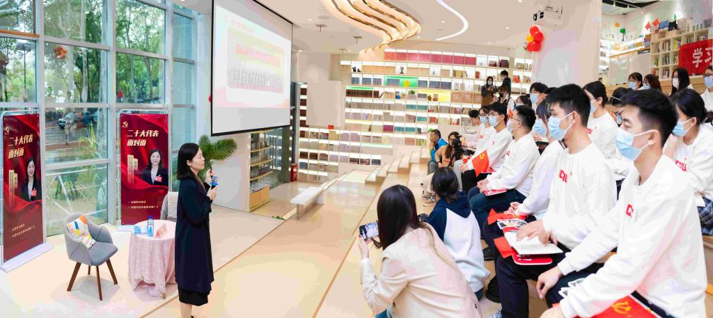 华大在线讯(记者 洪臻祎 见习记者 史雅丹)10月26日,党的二十大代表,全国劳动模范,中国书店年度阅读推广人,湖北省新华书店有限公司武汉市分公司党支部书记、经理周怡应邀来到倍阅利群书社,与凯发k8官网,凯发k8网址“华小诗”宣讲团面对面宣讲党的二十大精神,分享参会心得体会,指导宣讲团成员开展宣讲工作。