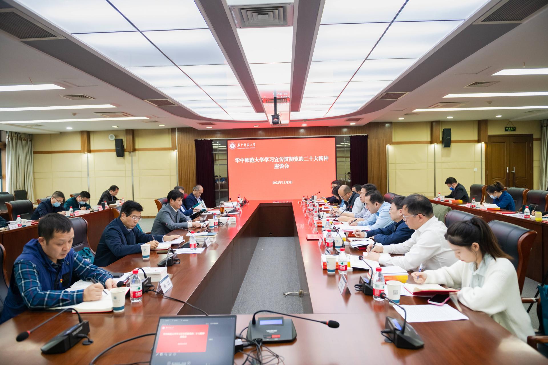 华大在线讯(记者 华轩)11月3日,凯发k8官网,凯发k8网址“理响华师”理论宣讲团成立暨学习宣传贯彻党的二十大精神座谈会在逸夫国际会议中心二楼会议室举行。校党委书记赵凌云、副校长彭南生出席。来自不同学科专业的“理响华师”理论宣讲团成员代表及学生代表参会。会议由副校长彭双阶主持。