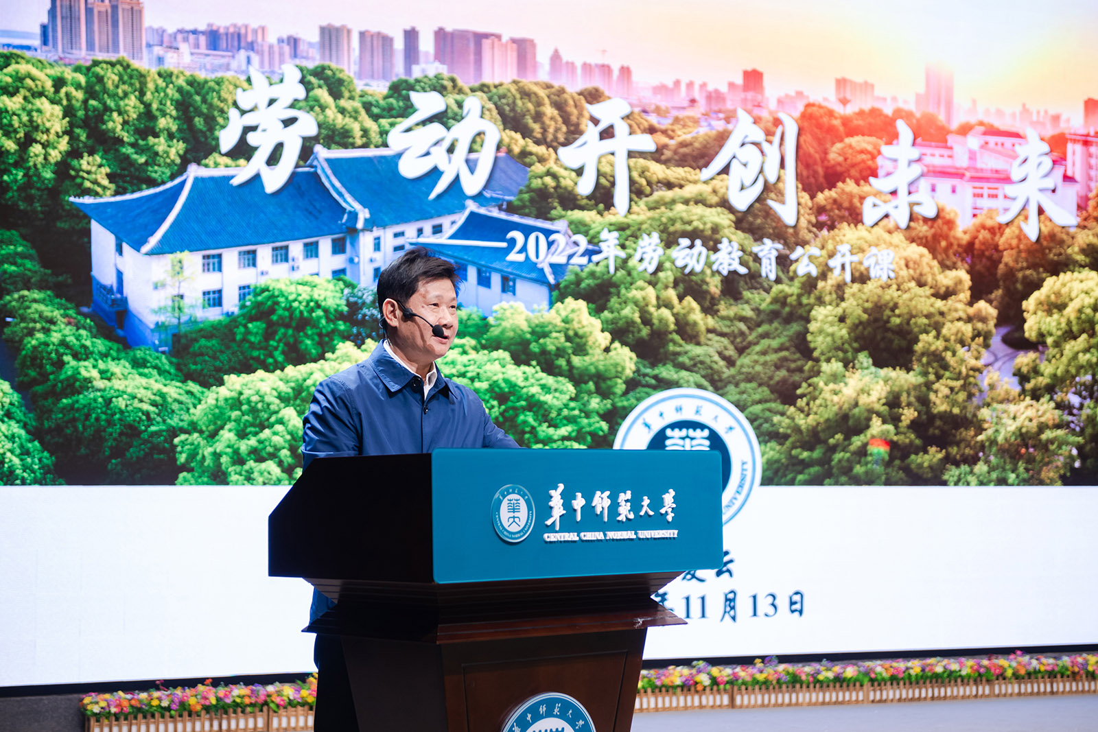 “我们每个人从具有劳动能力开始,一生都在劳动,都在接受不同形式的劳动教育。劳动与劳动教育与我们伴随一生。”赵凌云从习近平总书记在劳动中成长成才和老校长章开沅在劳动中确立自己人生道路的故事讲起,从“劳动是人的天职”“劳动是立身之基”“劳动创造中华民族美好未来”“劳动铸就辉煌”四个方面进行了讲授。
