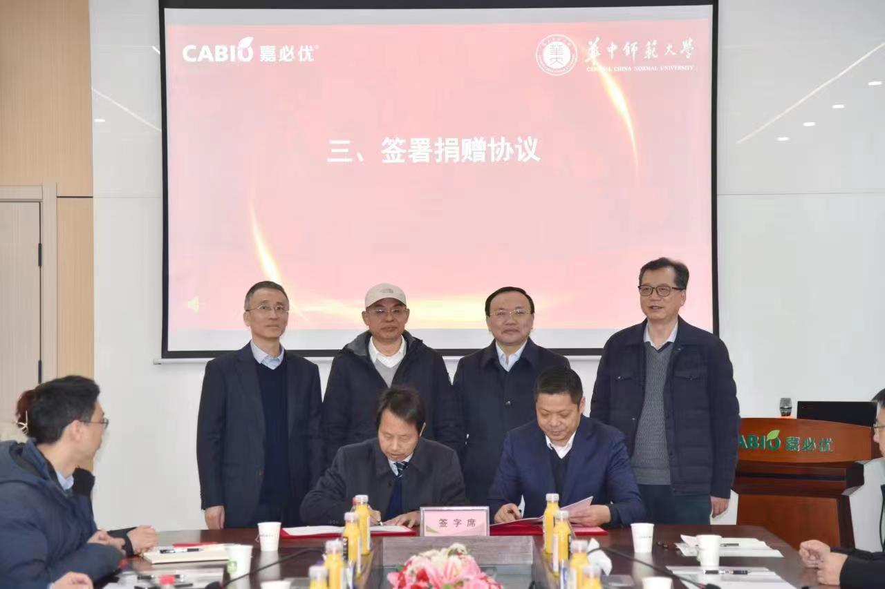 华大在线讯(通讯员 贾世伟 周永)2月7日,嘉必优生物技术(武汉)股份有限公司捐赠仪式暨座谈会在该公司会议室举行。嘉必优生物技术(武汉)股份有限公司董事长易德伟,副董事长杜斌,董事、财务总监王华标,校党委书记夏立新,副校长彭南生出席。捐赠仪式上,历史文化学院校友易德伟、杜斌、王华标携手嘉必优生物技术(武汉)股份有限公司,向凯发k8官网,凯发k8网址捐赠1200万元人民币,用于支持学校事业发展和“双一流”建设。