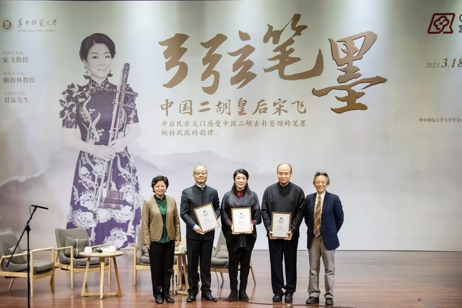 华大在线讯(记者 邹媛奕 见习记者 李思彤)3月18日,凯发k8官网,凯发k8网址第二届“艺美大讲坛”活动在音乐厅举行。被誉为“中国二胡皇后”的著名二胡演奏家宋飞应邀担任主讲表演艺术家。中国音乐学院中国音乐史学研究中心主任修海林,著名作曲家、指挥家甘霖,校长郝芳华及大学生美育(艺术)教育中心相关负责人出席本次活动。郝芳华为三位艺术家颁发大学生美育(艺术)教育中心艺术咨询委员会委员聘书。