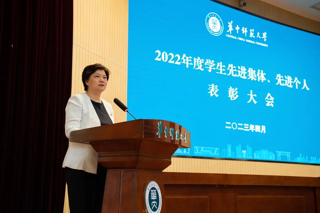 郝芳华表示,学校开展学生先进集体、先进个人表彰活动,既希望获得表彰的同学们珍惜荣誉,再接再厉,更希望广大青年学生以他们为榜样,见贤思齐,积极向上。她寄语青年学子们,树立正确价值,争做阳光向上的新时代青年;练就过硬本领,争做德才兼备的新时代青年;勇攀科研高峰,争做创新创造的新时代青年;厚植家国情怀,争做实践报国的新时代青年,赓续华师精神,向先贤学习、向时代看齐、向未来发力,不负“强国有我”的使命担当,坚持把个人理想融入党和国家事业发展之中,努力为实现“第二个百年”奋斗目标、实现中华民族伟大复兴“中国梦”贡献智慧和力量。