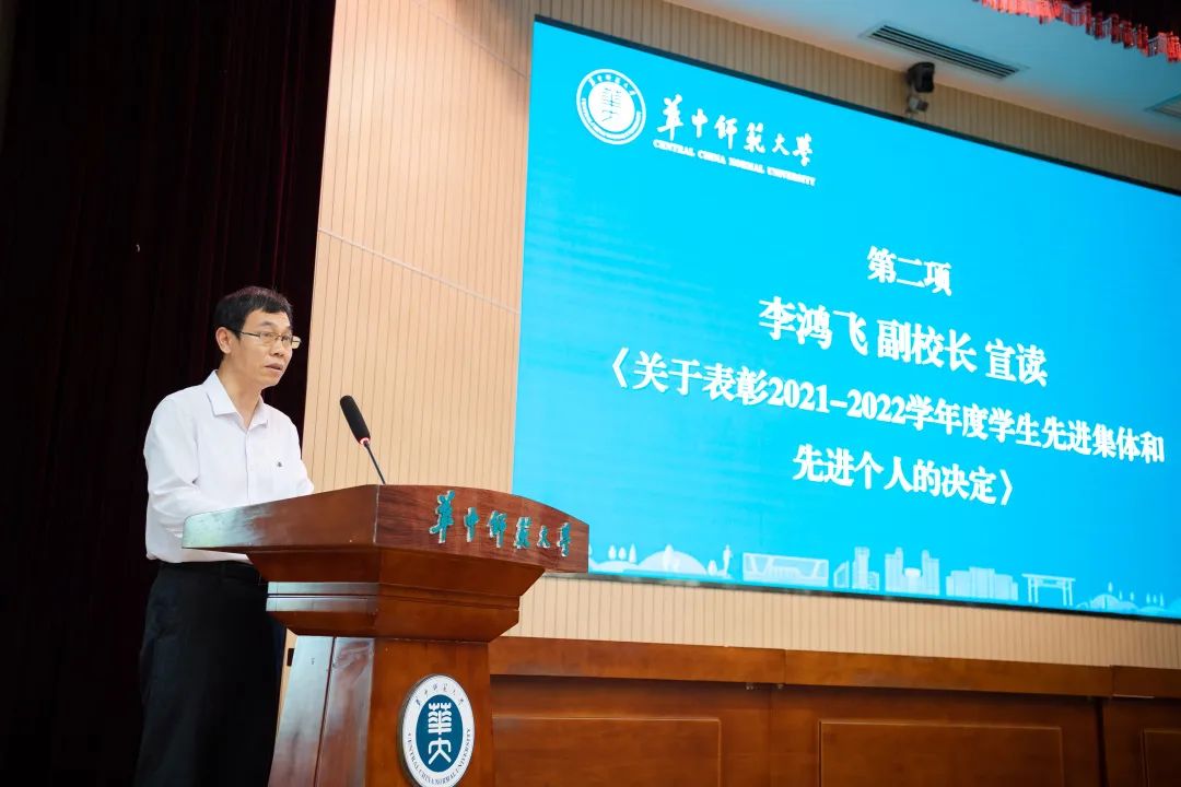 副校长李鸿飞宣读《凯发k8官网,凯发k8网址表彰2021-2022学年度学生先进集体和先进个人的决定》
