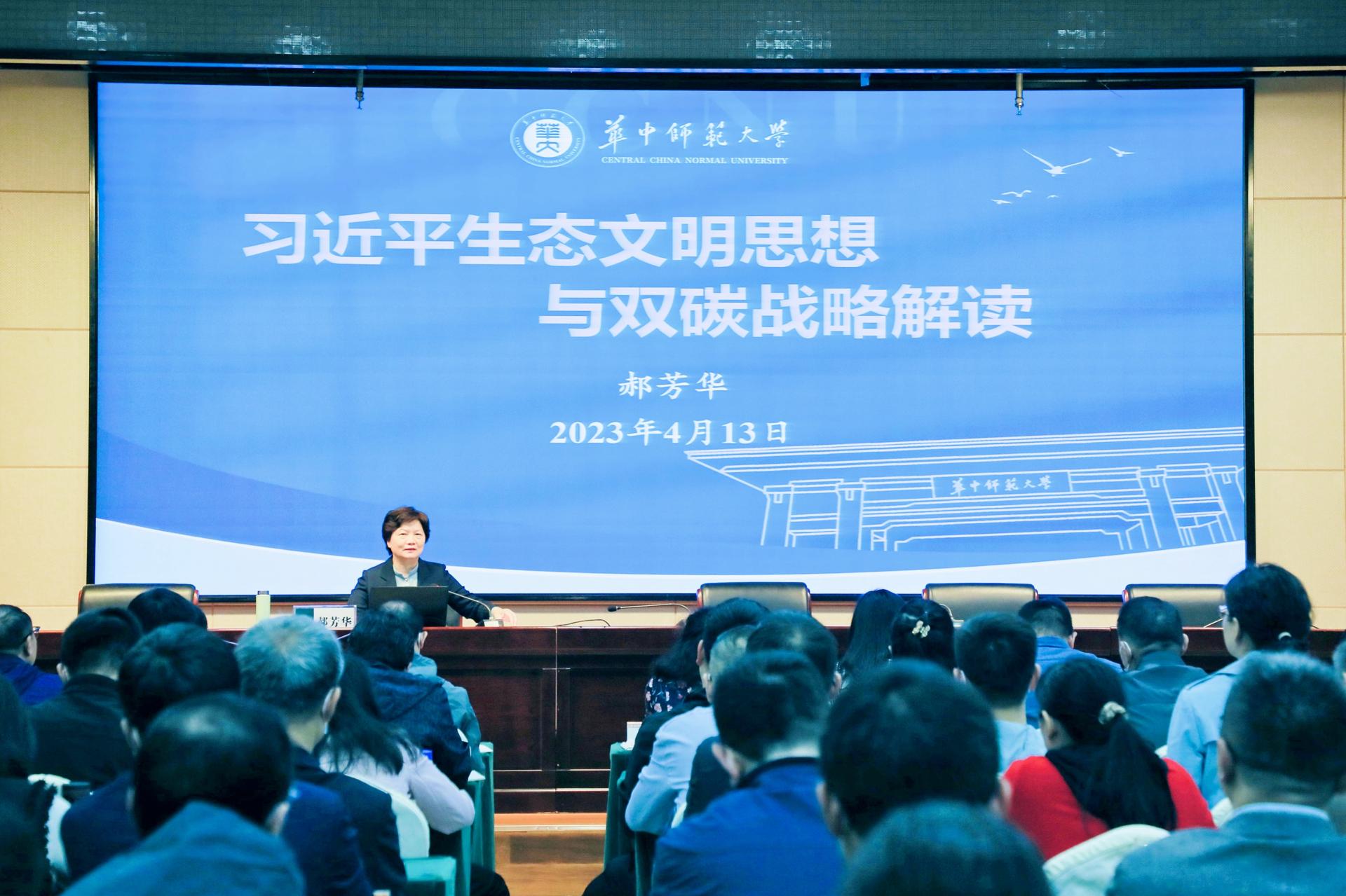 郝芳华在报告中结合自身学习、工作经历,以深刻的阐述、鲜活的案例深入解读了习近平生态文明思想的发展历程、主要内涵、重大意义和鲜明特色,详细介绍了双碳目标的战略意义、现实挑战、实践路径、热点趋势。在互动交流环节,郝芳华就学员提出的相关支持政策、双碳凯发k8官网,凯发k8网址等问题作了精彩的解答,并热情邀请大家在今年金秋时节再回桂子山共庆华师120周年华诞。