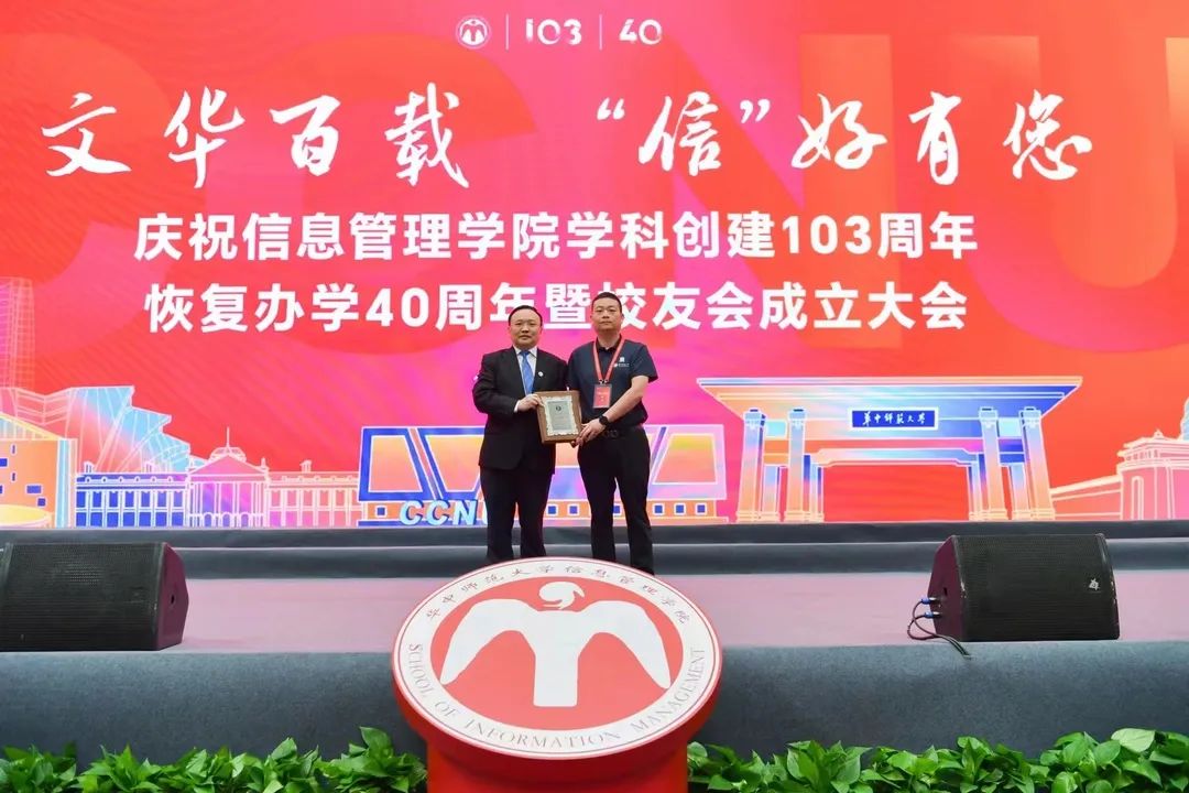 校友总会秘书长郭庆代表校友总会赠送纪念品,宣读校长、校友总会会长郝芳华贺信。贺信中,郝芳华向全体信息管理学院校友致以诚挚问候和美好祝福。百余年栉风沐雨,四十载奋斗求索。郝芳华希望,信息管理学院校友会积极作为,进一步扩大母校影响力,为校友事业发展提供有力支撑;希望广大校友携起手来,在坚守中求真,在开拓中创新,勠力同心,继往开来,为早日把华师建成“教师教育领先的世界一流大学”努力奋斗。