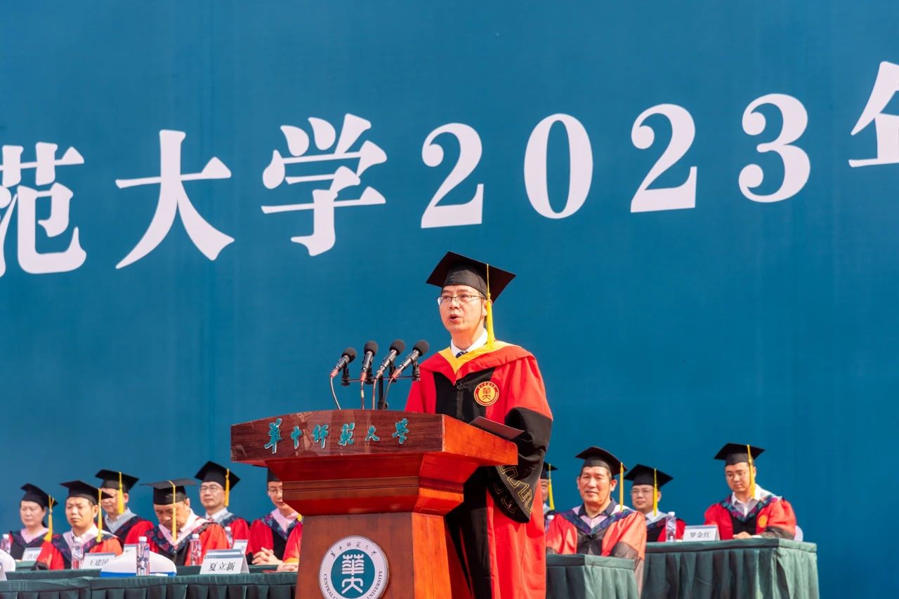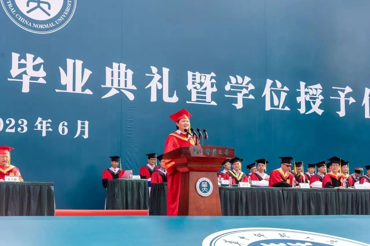 面对即将扬帆起航的毕业生们,郝芳华希望同学们记住在华师的青春岁月,带着桂子山的色彩奔赴教育强国、科技强国、文化强国等各条战线、各个战场。一是以校友为榜样,坚定理想信念,不忘初心本色,以“心中有阳光、脚下有力量”,践行“强国有我”的铮铮誓言;二是始终心怀“国之大者”,练就过硬本领,擦亮奋进底色,传承好艰苦奋斗的接力棒,在新技术、新模式、新业态层出不穷的新时代勇立潮头、奋楫争先;三是把握大势、抢占先机,激发创新活力,增添青春亮色,为解决“卡脖子”问题、推动我国关键领域和核心技术的自主创新,做出华师人新的贡献;四是要有家国情怀和人类关怀,要各美其美,更要美美与共,传承大爱精神,彰显华师特色,让华师大爱的种子在各地各处生根发芽。“世界上最短的路,就是回桂子山的路。”郝芳华真诚地邀请每一位毕业生在今年10月2日重返母校,与老师同学们一起,“再闻一闻桂子花香、再赏一赏南湖秋月,再唱一唱南湖浪涌、桂香灵动”,共迎学校120周年华诞。