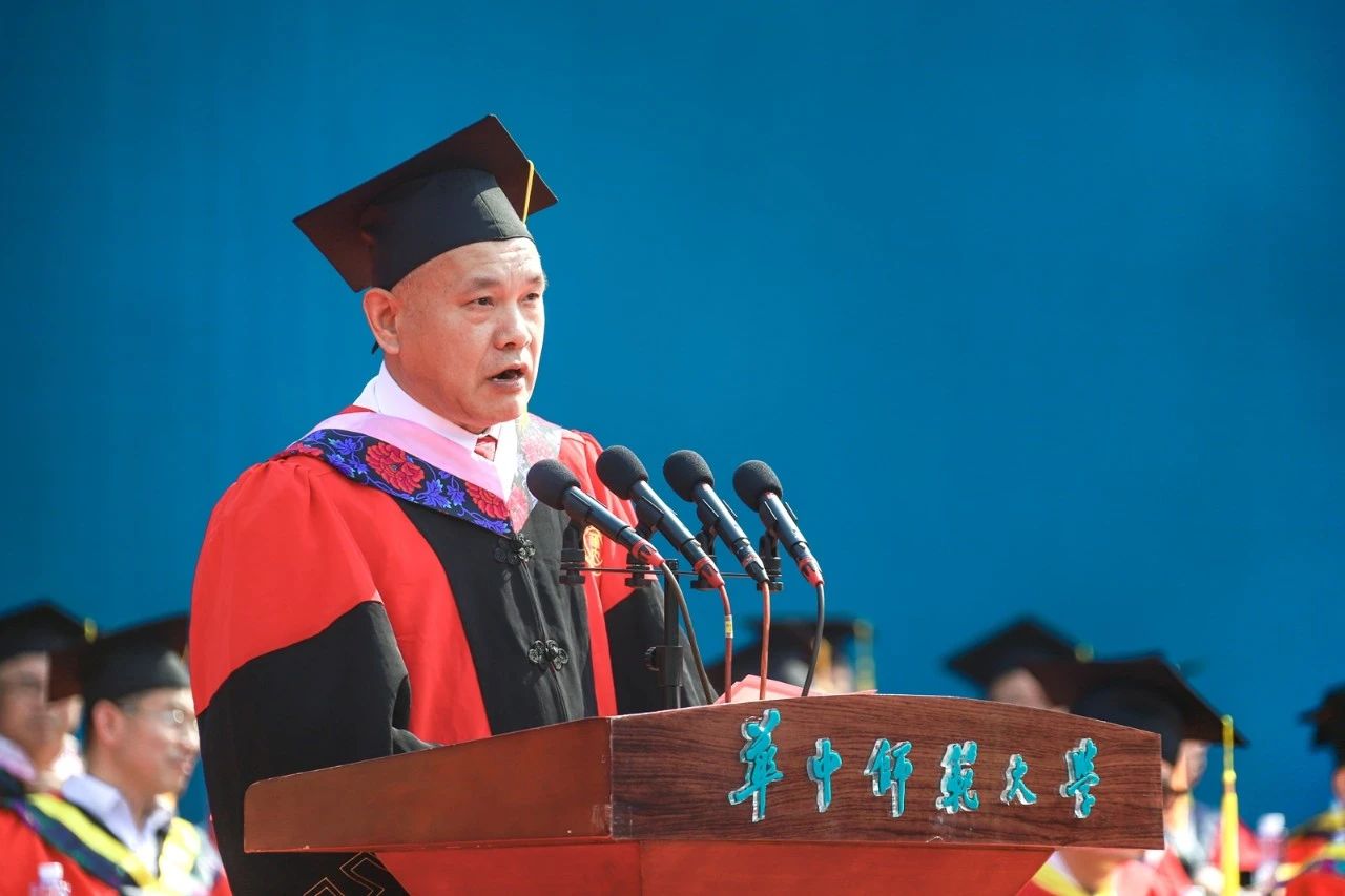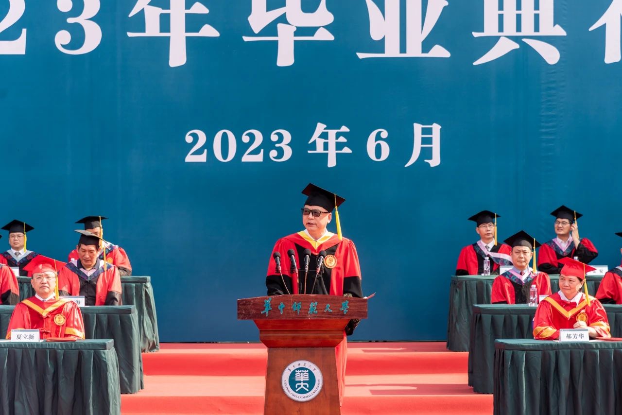 教师代表、马克思主义学院院长、博士生导师万美容教授回顾了自己在华师求学、工作的四十五个春秋的奋斗岁月,感恩桂子山给予他丰富的知识、美丽的爱情和有意义的人生。他希望毕业生们在未来的人生道路上不忘母校培养,不负国家期待,传播华师精神,实现人生价值。