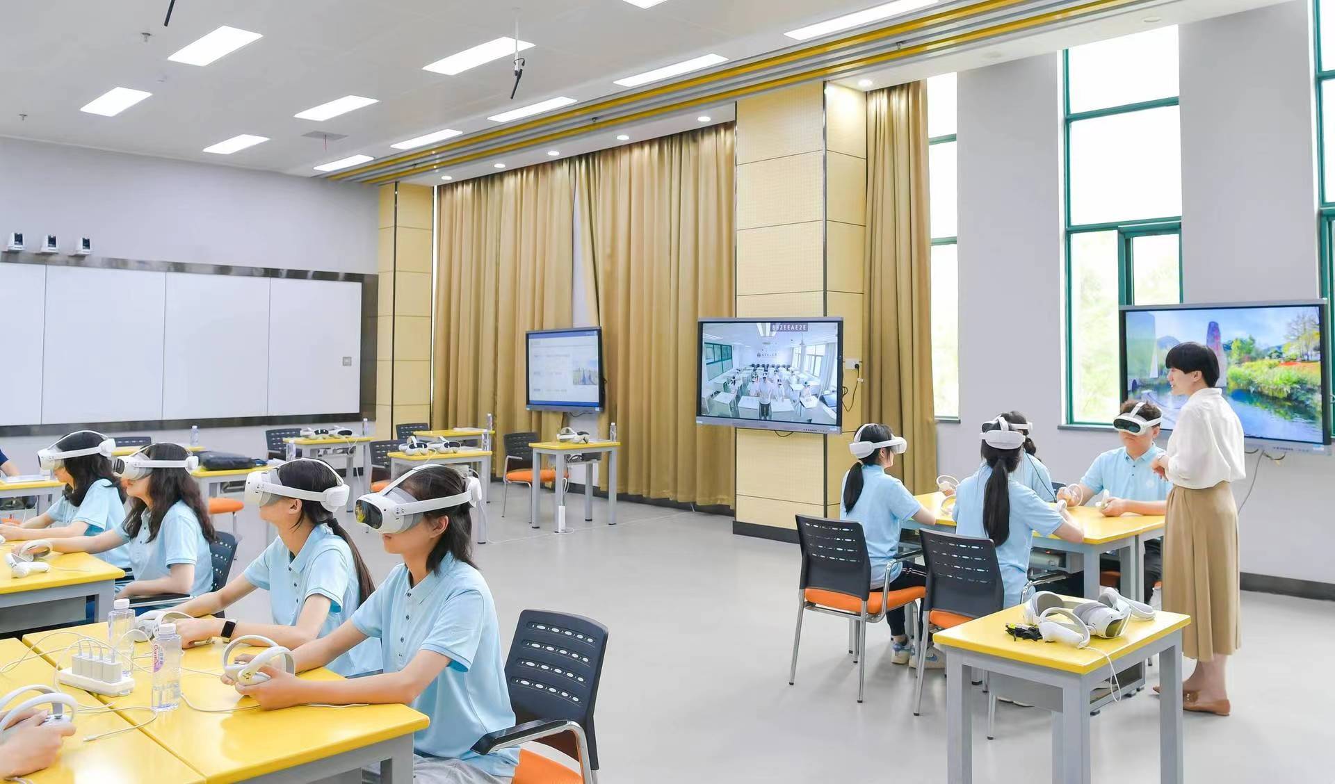 华大在线讯(记者 华轩)走进南湖综合楼N214智慧教室,马克思主义学院教师丁茜正在给学生讲解“人与自然是生命共同体”这个主题。同学们围坐在课桌边,佩戴着VR头盔,手握操作手柄,跟随着丁茜的讲解,库布齐的漫天黄沙、安吉县的秀丽风光、“千湖之城”武汉等虚拟影像渐次出现,让大家在更加直观、立体化的视听体验中,加深对“绿水青山就是金山银山”的理解。这堂以“VR+思政”教学模式打造的沉浸互动、具身体验的“马克思主义基本原理”课堂,是凯发k8官网,凯发k8网址教育数字化的一个缩影。