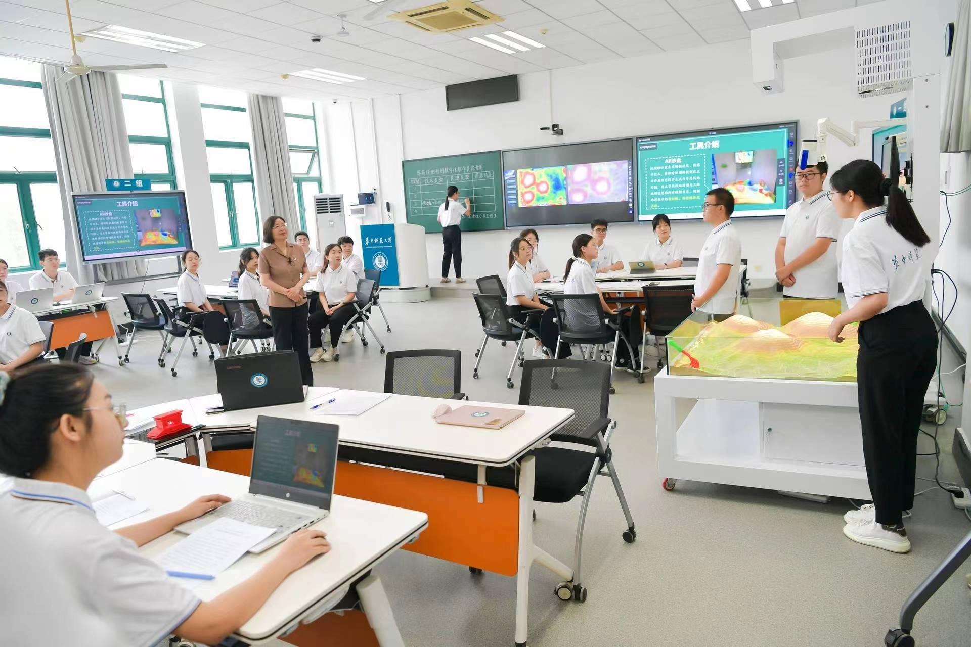 在2023年全国教育数字化现场推进会议期间,教育部党组书记、部长怀进鹏等领导深入凯发k8官网,凯发k8网址城市与环境科学学院陈实教授的《等高线地形图数字化教学资源开发》课堂听课,并与师生交流。教育部党组成员、副部长吴岩来校调研指导教育数字化工作。