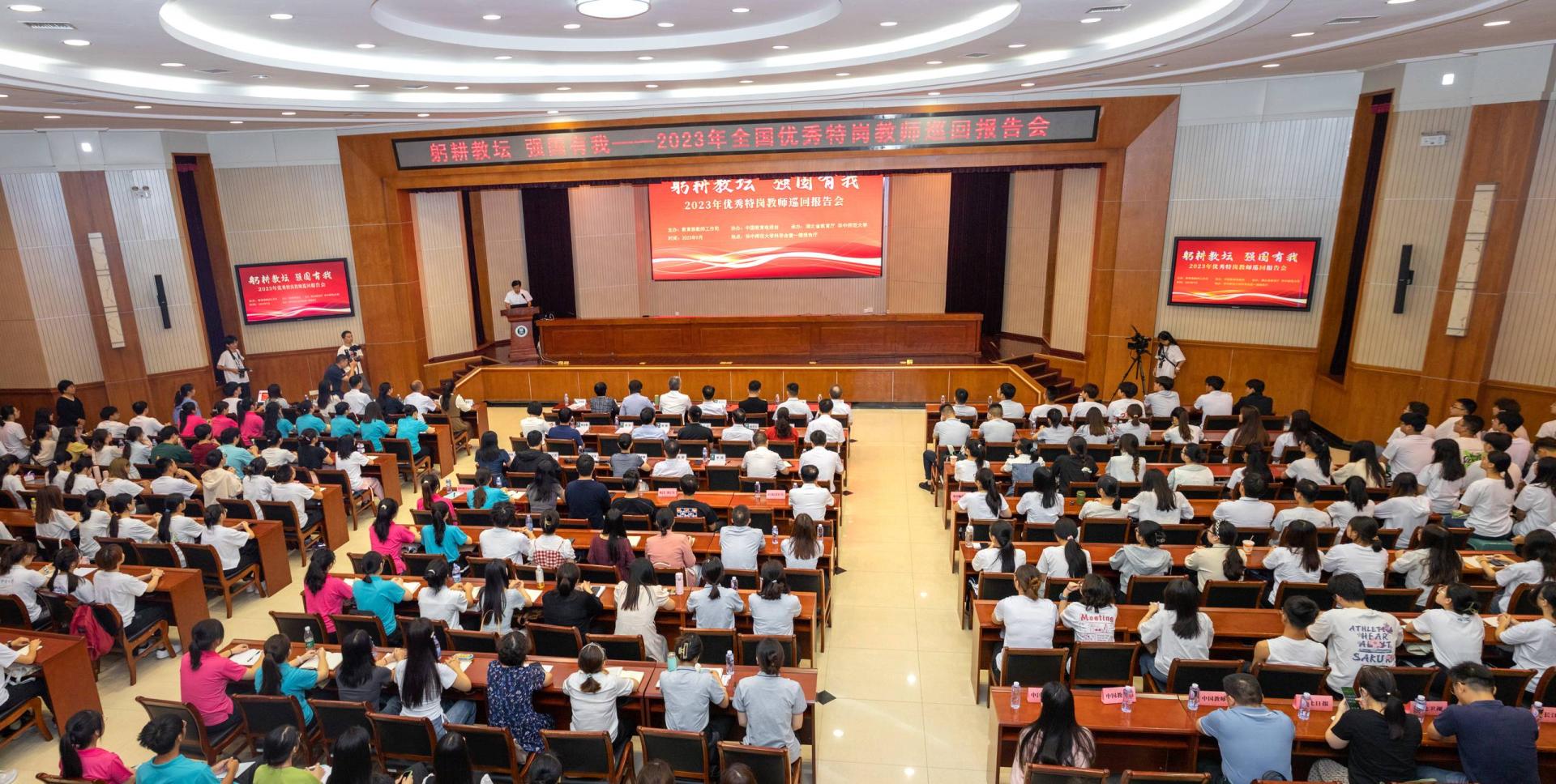 华大在线讯(通讯员 申定羽)9月2日,“躬耕教坛,强国有我”全国优秀特岗教师巡回报告会在科学会堂一楼报告厅举行。教育部教师工作司副司长黄小华、湖北省教育厅副厅长邓立红、校长郝芳华,以及湖北大学、湖北第二师范学院、武汉城市职业学院、湖北幼儿师范高等专科学校领导及师生参加。报告会由副校长彭双阶主持。