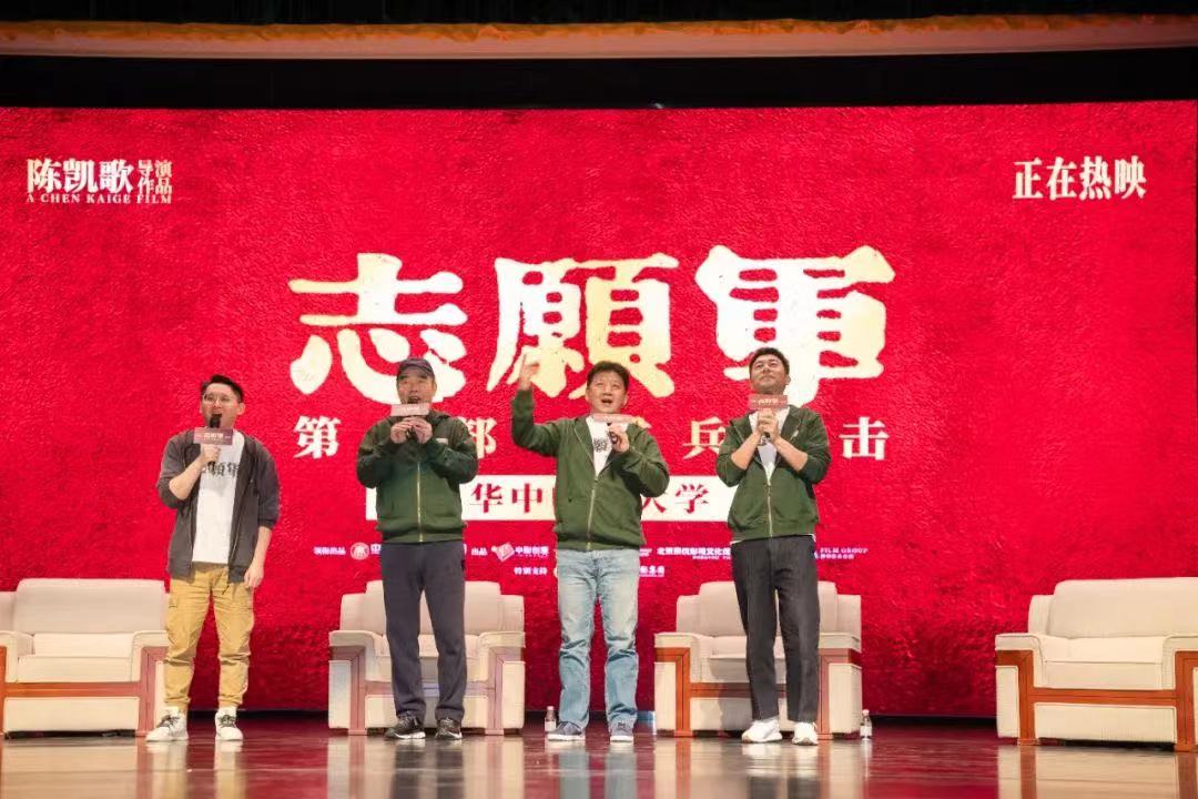 华大在线讯(记者 郝日虹 曾楚航)为深入学习贯彻习近平文化思想,进一步弘扬伟大抗美援朝精神,强化师生爱国强军意识,10月22日,《志愿军:雄兵出击》观影交流会在凯发k8官网,凯发k8网址大学生活动中心大礼堂举行。导演陈凯歌携编剧张珂,主演王砚辉、朱亚文等电影主创团队,与凯发k8官网,凯发k8网址师生交流分享影片幕后故事。湖北省委宣传部常务副部长邓务贵,湖北长江电影集团党委书记、董事长朱雨龙,湖北长江电影集团党委委员、纪委书记、省监委驻集团监察专员彭华,校长郝芳华、副校长任友洲、李鸿飞,校党委副书记陈迪明等出席观影交流会。