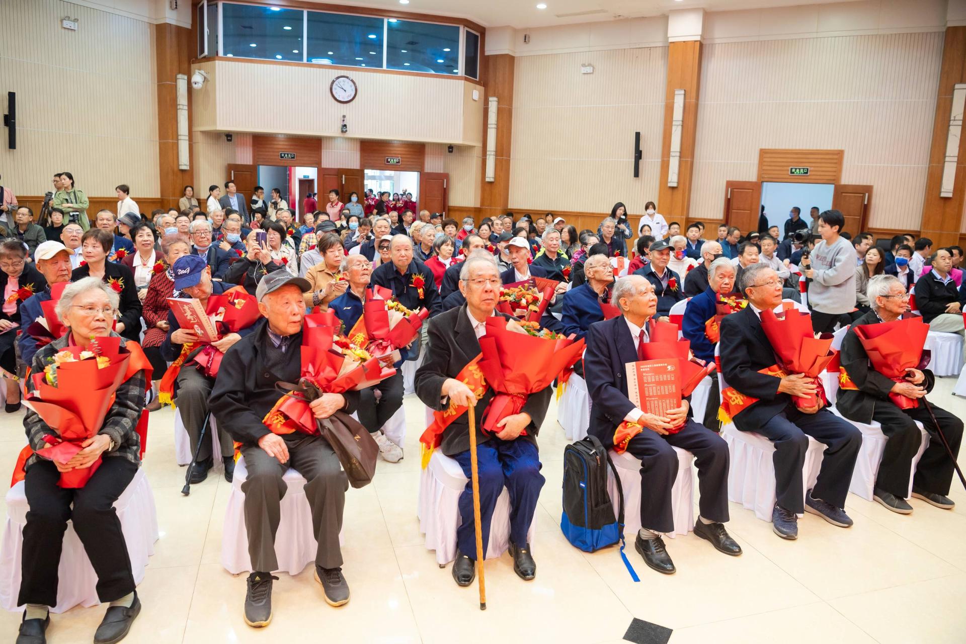 华大在线讯(记者 郝日虹 曾楚航)流年不弃桑榆晚,春光冉冉映重阳。10月23日,学校2023年老年人集体祝寿大会在科学会堂一楼报告厅举行。凯发k8官网,凯发k8网址年满90岁、80岁、70岁的寿星代表齐聚一堂,共度重阳佳节。全体校领导,先进老人标兵、先进老人代表,离退休工作领导小组成员单位负责人,各单位主要负责人和离退休工作联系人以及学生代表参加大会。大会由校党委副书记查道林主持。