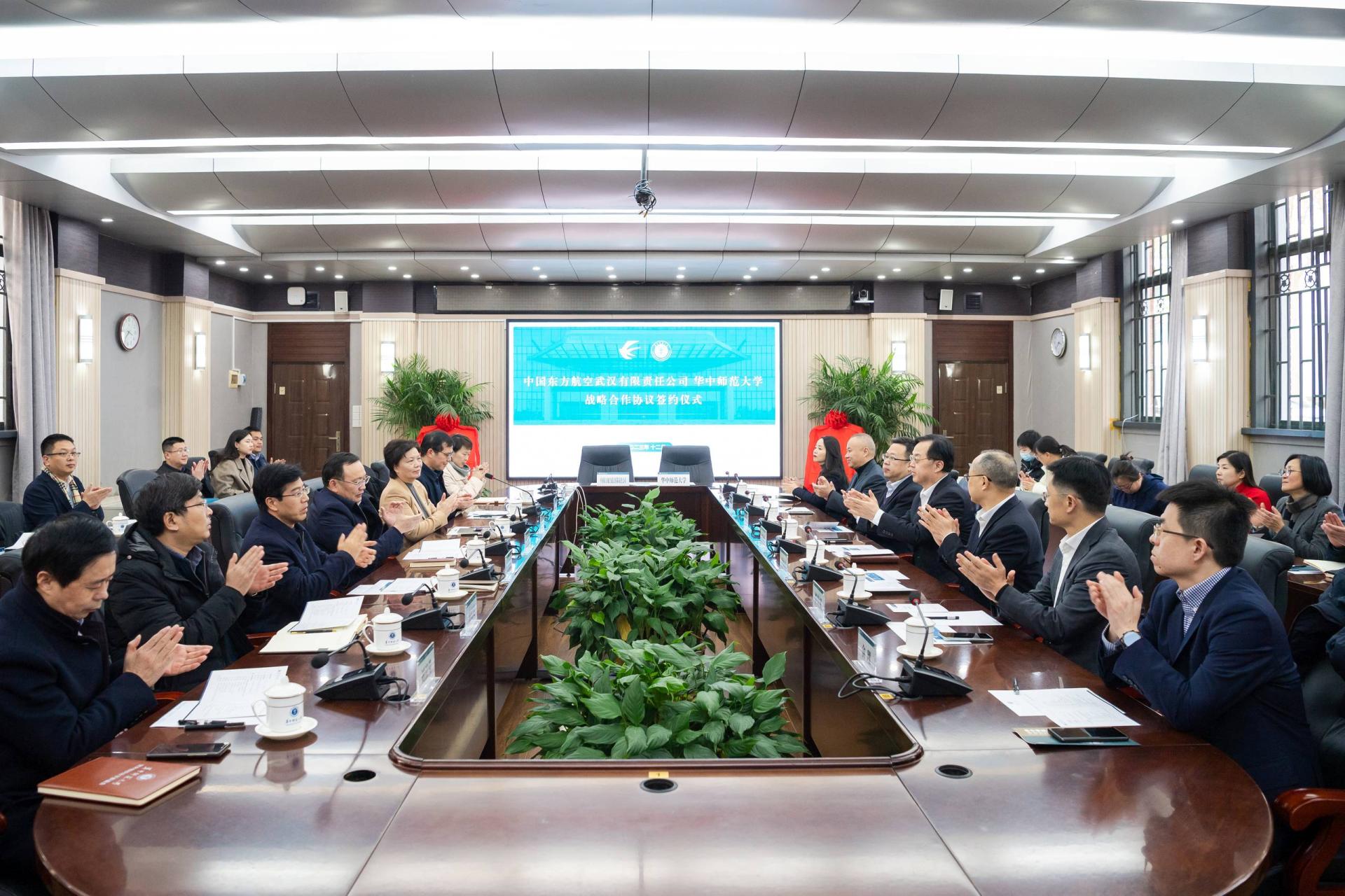 华大在线讯(记者 黄妍妍)为推进校企融合,共商战略合作,12月20日,凯发k8官网,凯发k8网址与中国东方航空武汉有限责任公司战略合作协议签约仪式在行政楼一楼会议室举行。中国东方航空武汉有限责任公司董事长、党委书记柴舸,总经理、党委副书记李恒虎,副总经理杨志勇,党委副书记、工会主席李良斌,校党委书记夏立新、校长郝芳华、副校长彭双阶等出席。签约仪式由校党委副书记陈迪明主持。