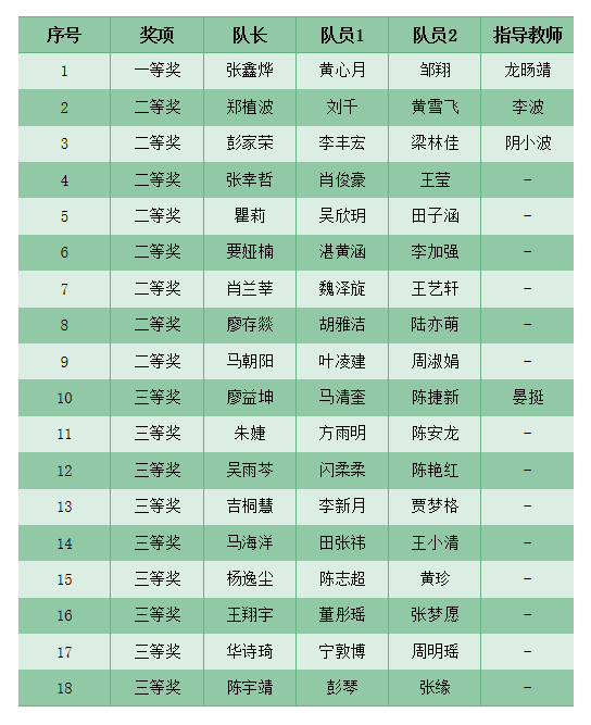 图为一等奖获奖队伍,从左至右分别为邹翔、黄心月、张鑫烨,指导教师龙旸靖