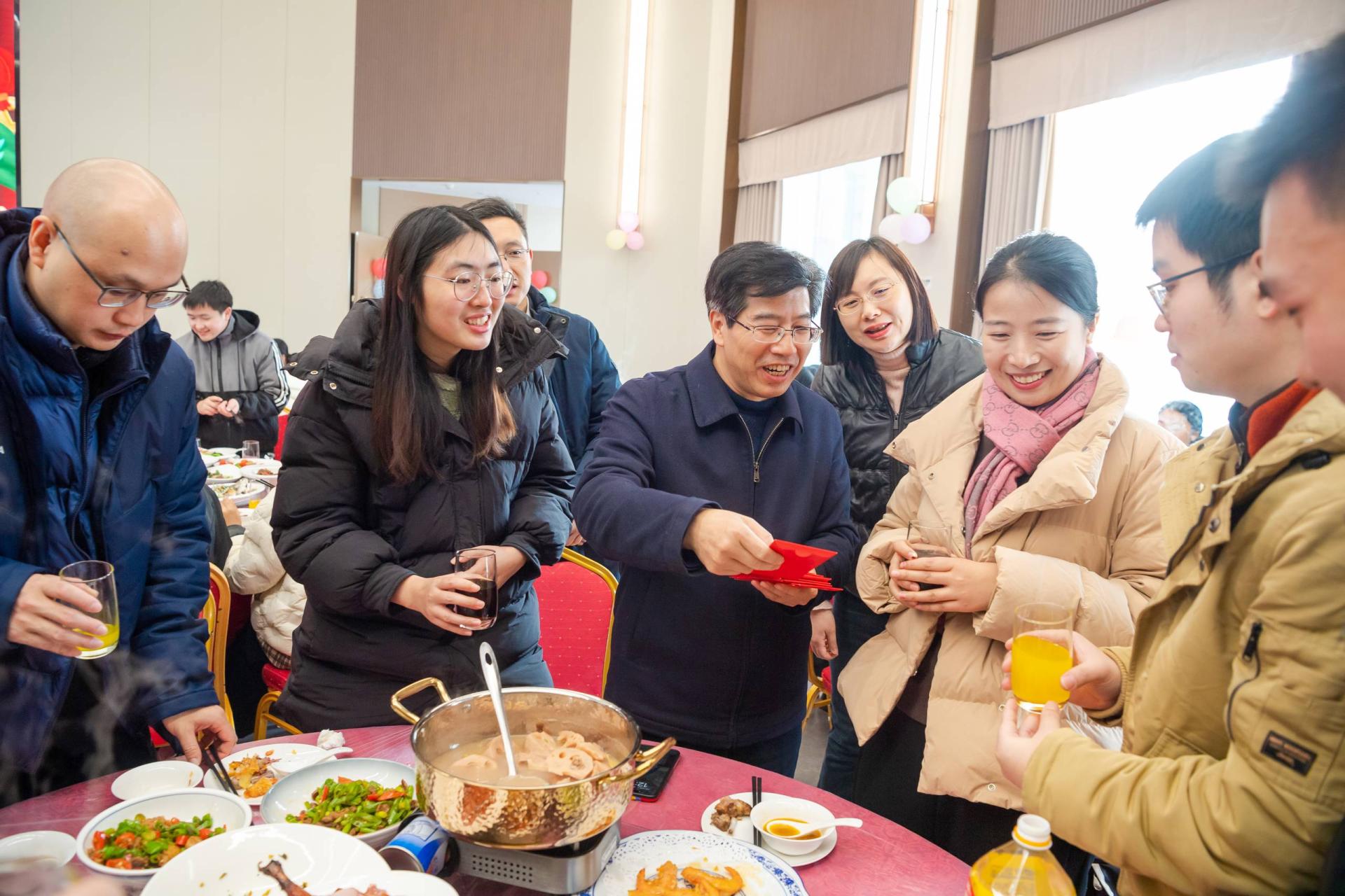 暖心的新年红包,丰盛的美味佳肴,喜庆的贺岁礼包……年味十足团年宴上,师生共话家常,欢声笑语,欢乐祥和。“师生齐聚,年味正浓,非常感谢学校的关心和关怀。”化学学院2022级本科生马淑蓉第一次跟老师和同学吃团年饭,这将成为她凯发k8官网,凯发k8网址春节的独特记忆。