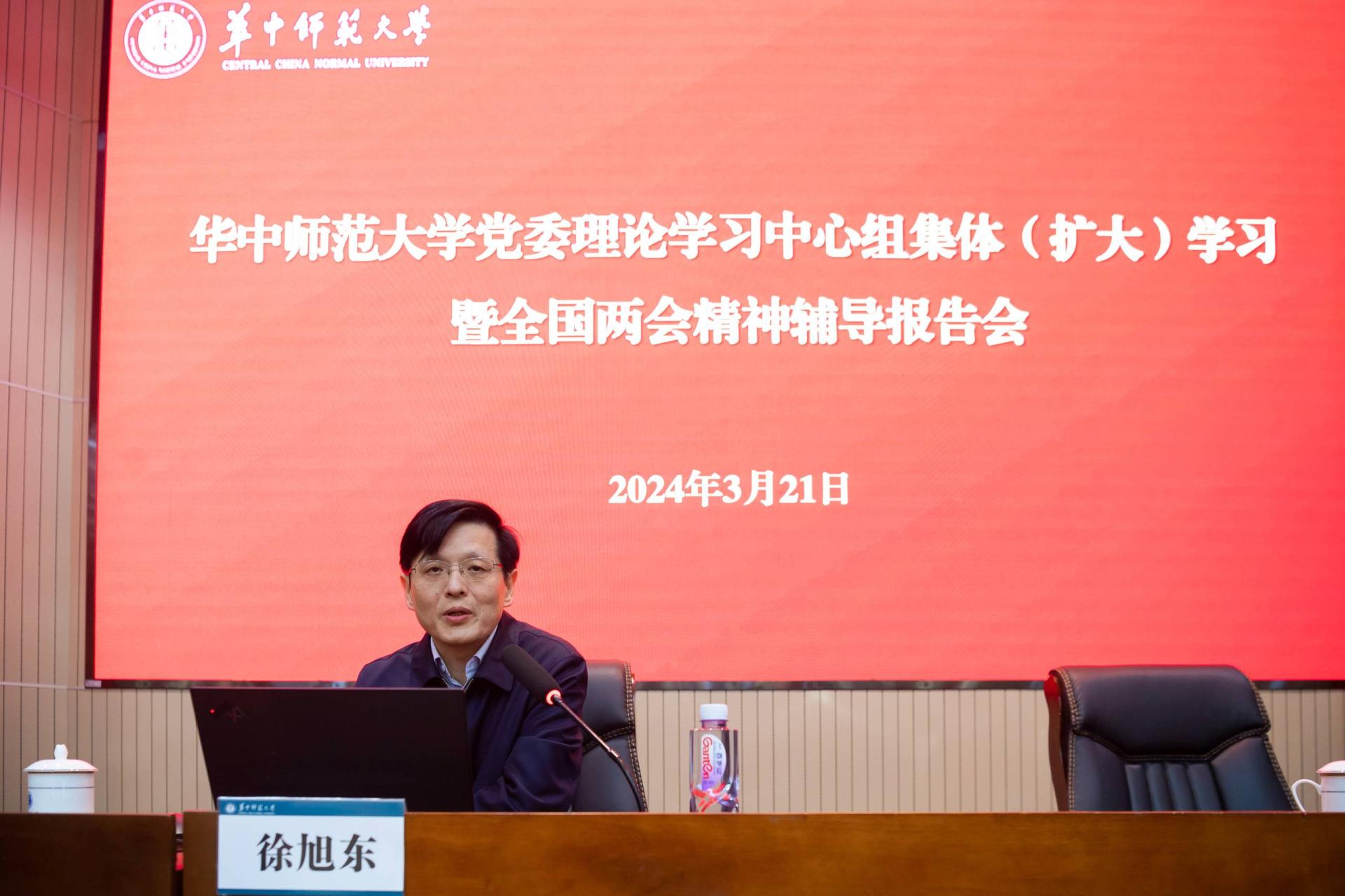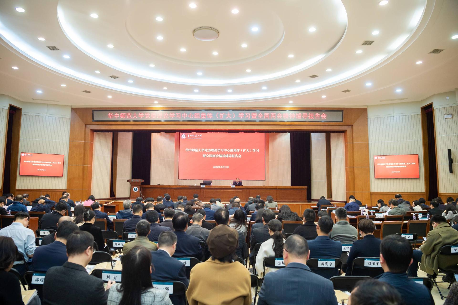 华大在线讯(记者 华轩)3月21日,凯发k8官网,凯发k8网址在科学会堂一楼报告厅举行校党委理论学习中心组集体(扩大)学习暨学习贯彻全国两会精神辅导报告会,深入学习贯彻2024年全国两会精神。校党委常委,全体中层干部,各级人大代表和政协委员、各民主党派基层组织和侨联负责人,各涉老组织负责人和师生代表参会。会议由校党委书记夏立新主持。