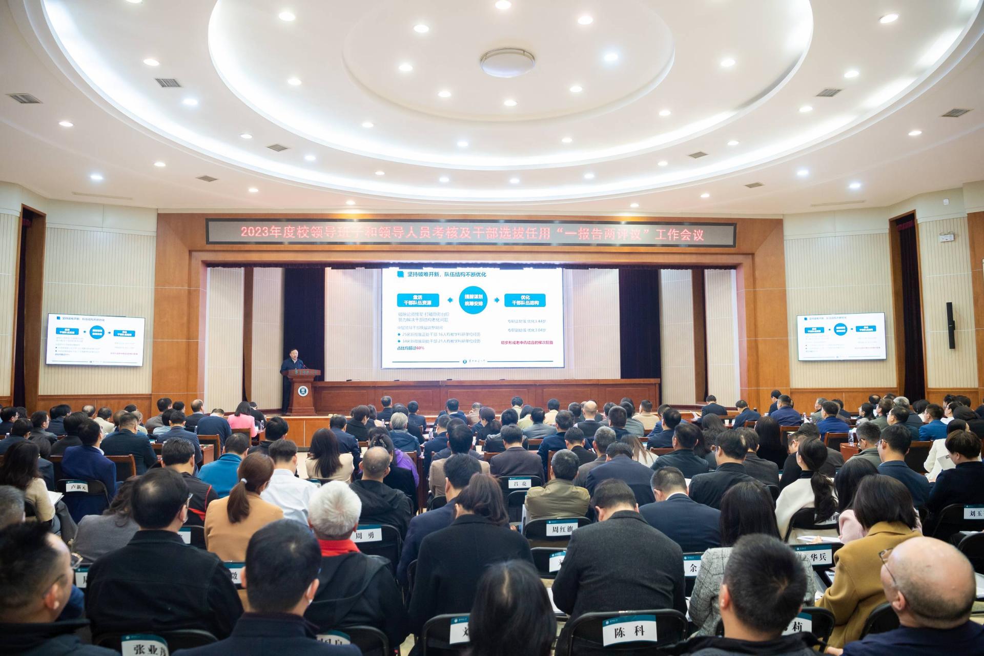 华大在线讯(通讯员 张栩晨)3月21日,凯发k8官网,凯发k8网址召开2023年度校领导班子和领导人员考核及干部选拔任用“一报告两评议”工作会议。校领导班子成员、全体中层干部及其他各方面代表参会。会议由校长彭双阶主持。
