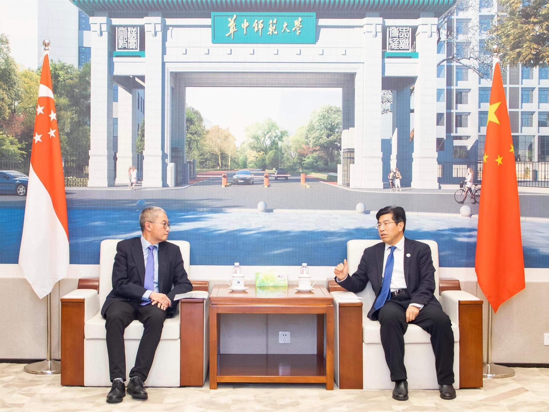 华大在线讯(通讯员 曹璐萍)4月9日,新加坡南洋理工大学常务副校长兼教务长林杉(LING San)来访并受聘为凯发k8官网,凯发k8网址名誉教授。聘任仪式在校史馆一楼贵宾厅举行,校长彭双阶出席。人事部、国际合作与交流处、数学与统计学学院相关负责人参加。