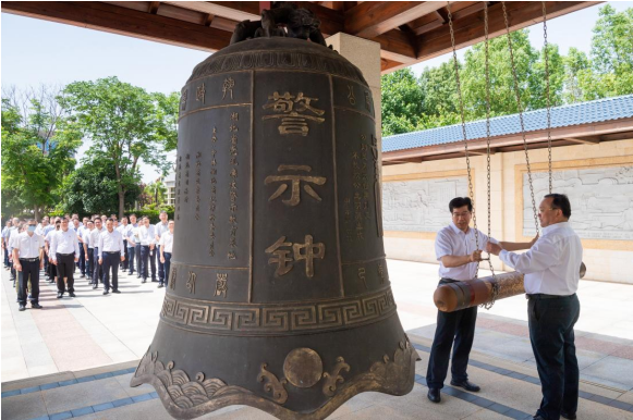 参观结束后,全体党员干部来到警示教育广场,面向警示钟庄严肃立。夏立新、彭双阶携手敲响了廉洁警示钟。三声警钟响起,入耳入脑更入心,提醒党员干部要学纪、知纪、明纪、守纪,始终做到忠诚干净担当。相关党员干部表示,一桩桩违纪违法犯罪案例发人深省,一封封忏悔书触及灵魂,大家接受了一次深刻的警示教育和精神洗礼,今后要把遵规守纪内化为思想自觉和行动自觉。