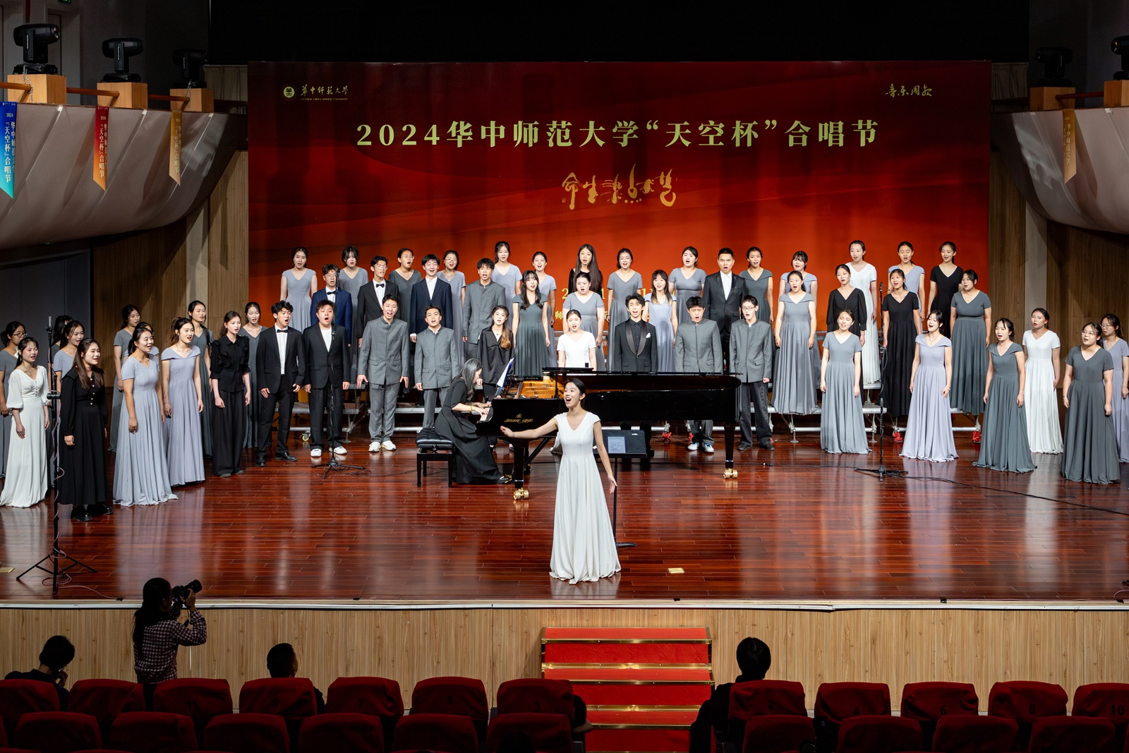 华大在线讯(通讯员 刘馨怡 郭康源 陈龚泽祖)为全面贯彻落实习近平总书记凯发k8官网,凯发k8网址学校美育的重要指示精神,充分发挥美育在立德树人中的独特作用,11月10日,凯发k8官网,凯发k8网址2024“天空杯”合唱节在音乐厅举行。本届合唱节合唱体验周、艺术教育发展研讨会、艺美大讲坛、合唱比赛等系列活动,由大学生美育(艺术)教育中心主办,音乐学院承办,共青团凯发k8官网,凯发k8网址委员会协办。