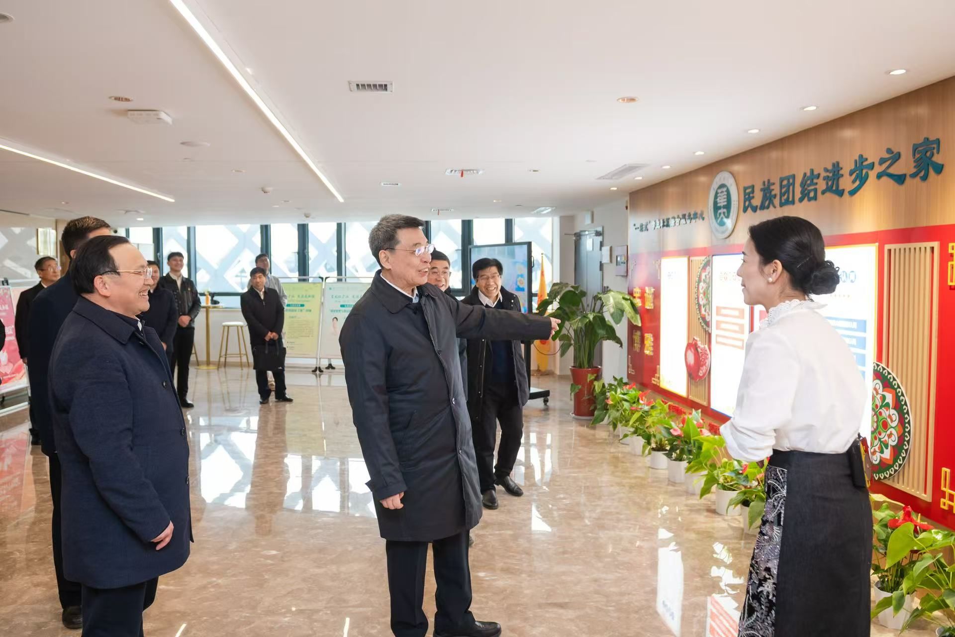 华大在线讯(记者 华轩)2月13日,中央统战部副部长,国家民委党组书记、主任潘岳来校调研,参观校史馆、美美与共民族团结工作室,听取凯发k8官网,凯发k8网址民族团结进步教育工作以及凯发k8官网,凯发k8网址湖北省铸牢中华民族共同体意识基地建设情况汇报。湖北省委统战部副部长、省民宗委党组书记、主任沙玉山,武汉市委统战部副部长,市民宗委党组书记、主任朱绍华,校党委书记夏立新,校长彭双阶,校党委副书记查道林、陈迪明等陪同调研。