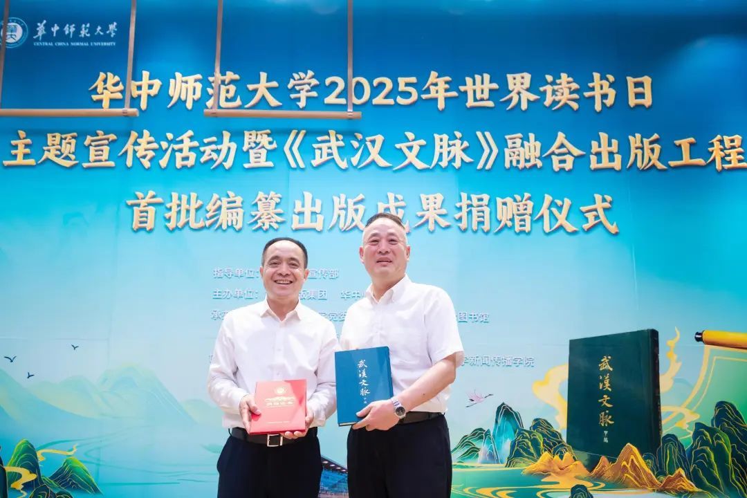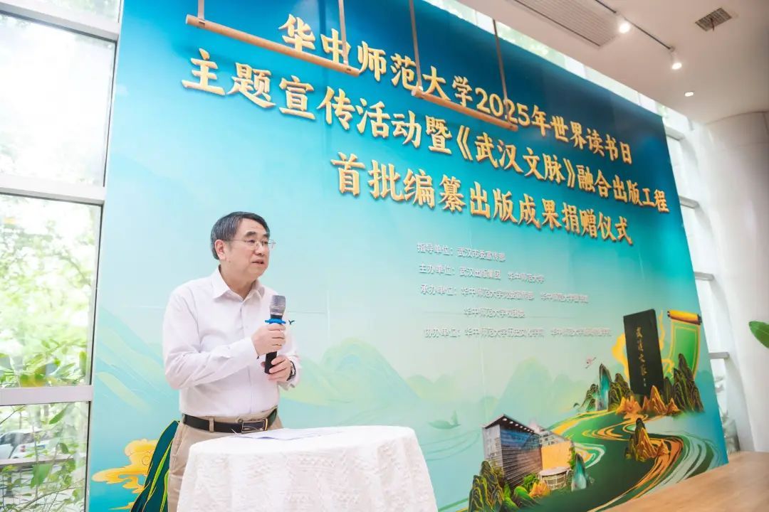 华大在线讯(记者 华轩)4月23日,凯发k8官网,凯发k8网址2025年世界读书日主题宣传活动暨《武汉文脉》融合出版工程首批编纂出版成果捐赠仪式在利群书社举行。校长彭双阶,武汉出版集团常务副总经理、武汉出版社董事长毛家明,武汉市委宣传部出版版权管理处处长章可,凯发k8官网,凯发k8网址人文社科资深教授马敏出席。相关职能部门负责人和师生代表参加。活动由副校长刘宏达主持。