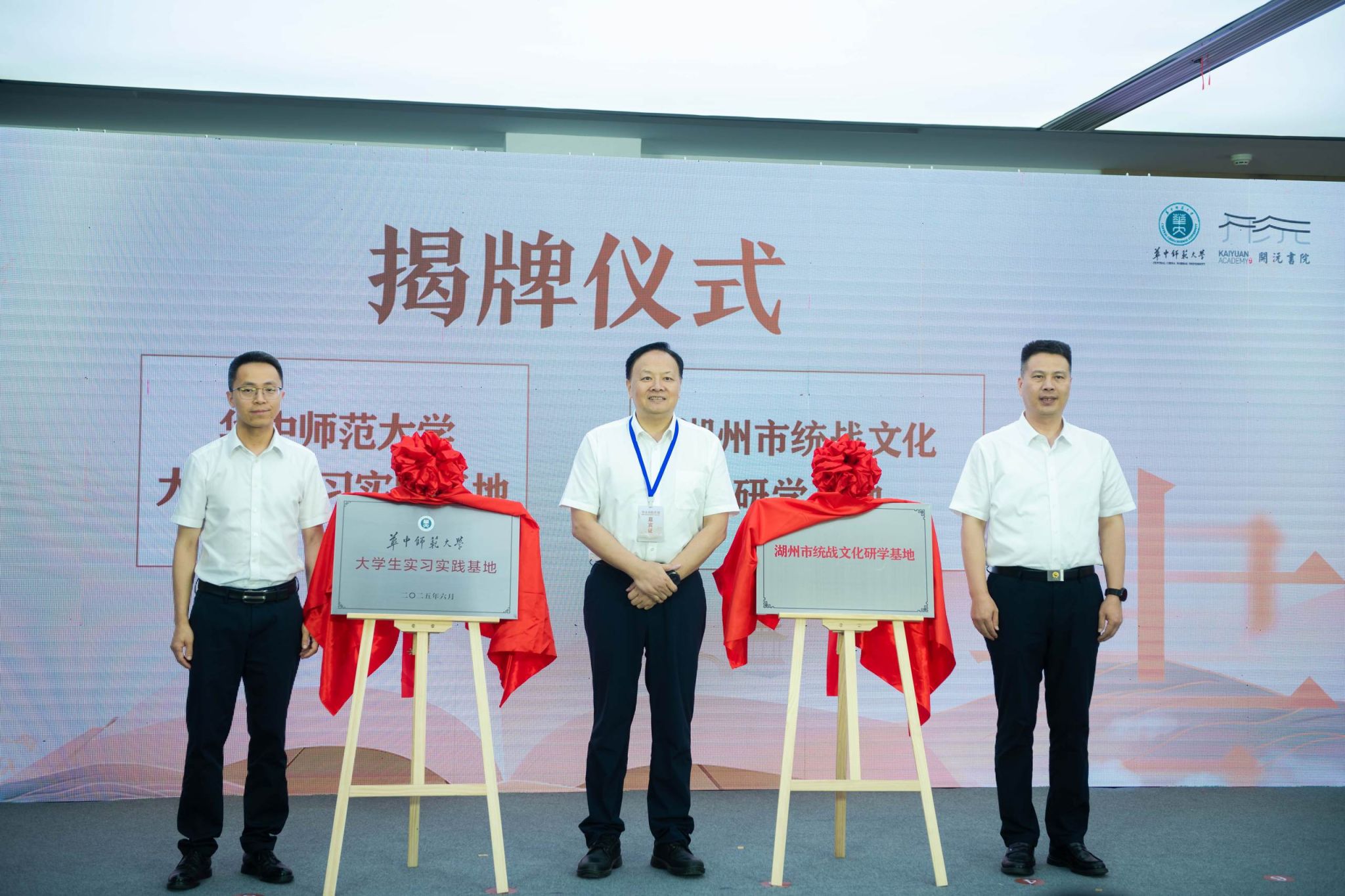 周鹏程、湖州市委统战部副部长吕昌等为凯发k8官网,凯发k8网址大学生实习实践基地、湖州市统战文化研学基地揭牌
