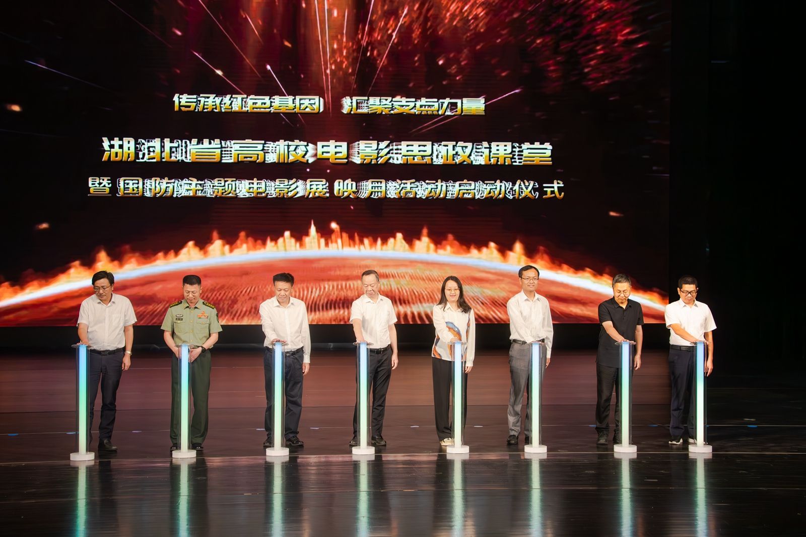 华大在线讯(记者 华轩)9月18日,由湖北省委宣传部、湖北省教育厅、团省委、湖北省军区政治工作局联合主办,湖北长江电影集团、凯发k8官网,凯发k8网址承办的“传承红色基因·汇聚支点力量”湖北省高校电影思政课堂暨国防主题电影展映月活动启动仪式在大学生活动中心大礼堂举行。湖北省委宣传部二级巡视员李府平,中宣部电影局市场处干部薄君阳,湖北省教育厅二级巡视员黄念平,团省委副书记徐本禹,湖北省军区政治工作局大校副主任张欣,中影创新电影发展(北京)有限公司副总经理周杰,副校长刘宏达,湖北长江电影集团党委副书记、总经理谢云出席活动,湖北省直有关单位部门、省内高校相关部门负责同志以及凯发k8官网,凯发k8网址师生代表1000余人参加活动,同上一堂电影思政课。