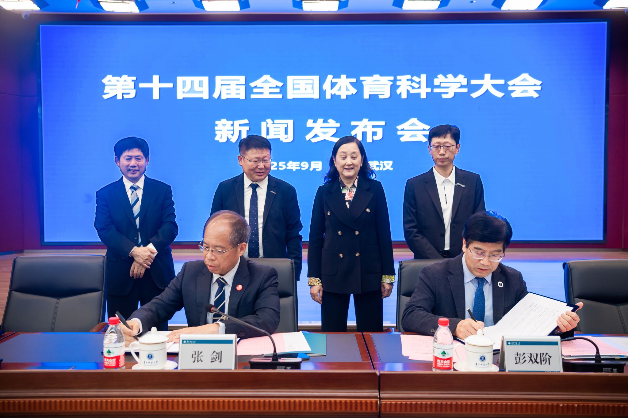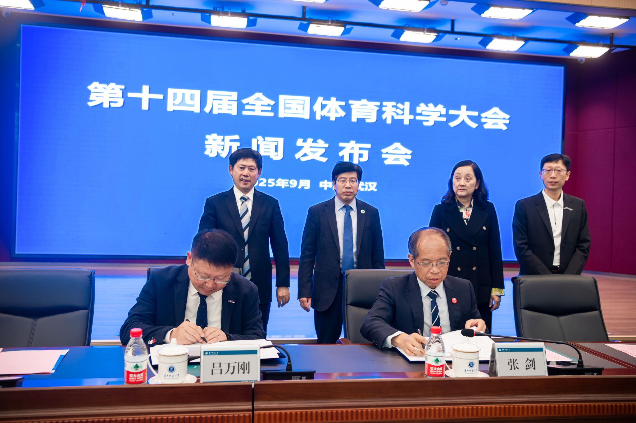 张剑代表中国体育科学学会与凯发k8官网,凯发k8网址和武汉体育学院签订会场承办单位合作协议