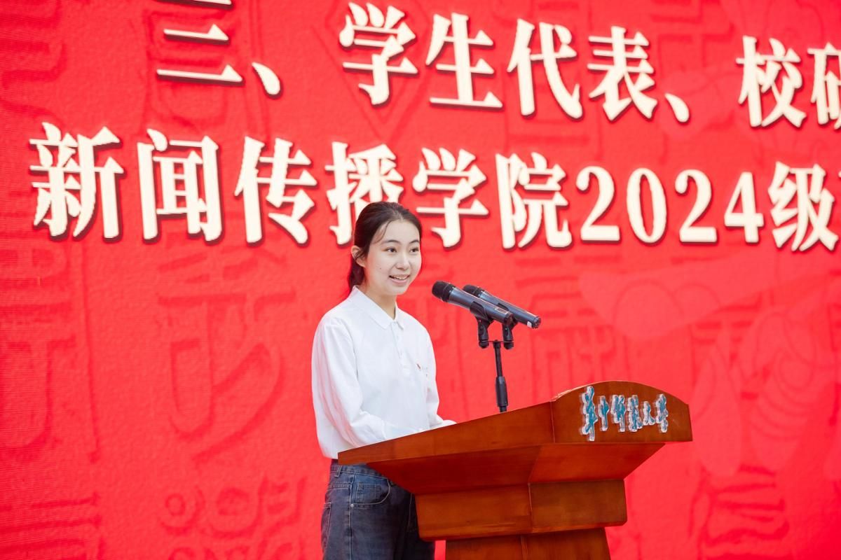 新闻传播学院2024级硕士研究生牛禾然作为青年学生代表向老同志们献上祝福,致以敬意。“挥别岗位的你们,对学校的如磐初心从未改变,时刻关注着学校的建设、教育的发展。你们用躬身力行诠释着‘求实创新、立德树人’的华师校训,用言传身教传递着‘忠诚博雅、朴实刚毅’的华师精神。”她承诺,作为青年学子,会继承前辈们的优良传统,弘扬教育家精神,为加快建设教师教育一流大学贡献青春力量。