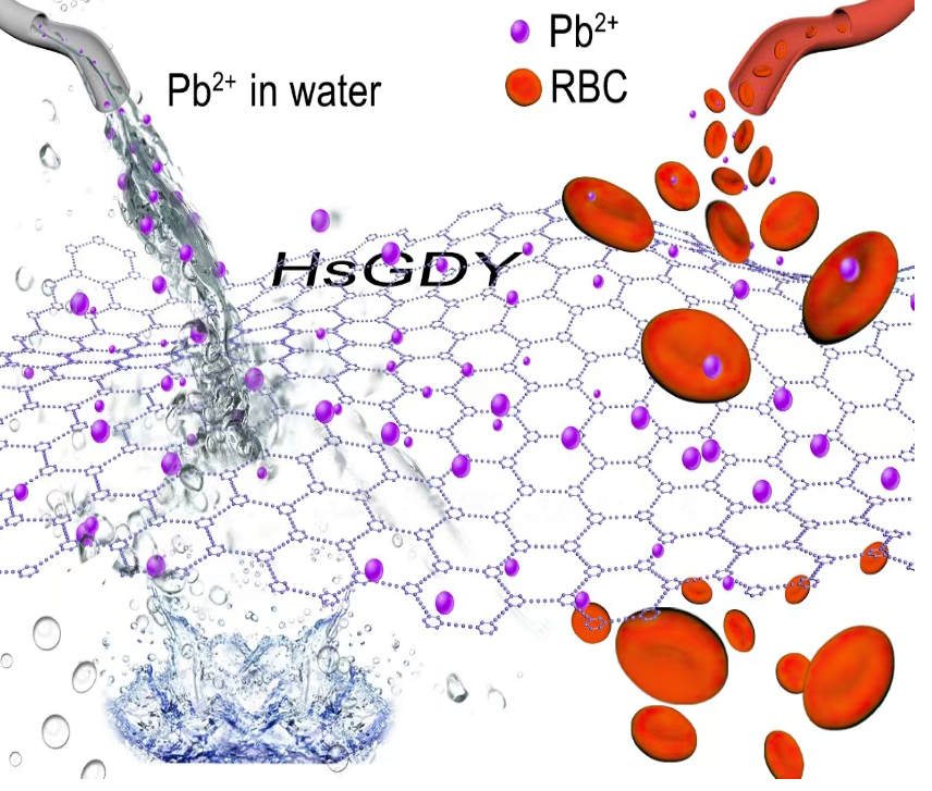 氢化石墨炔去除水溶液及血液中铅的示意图