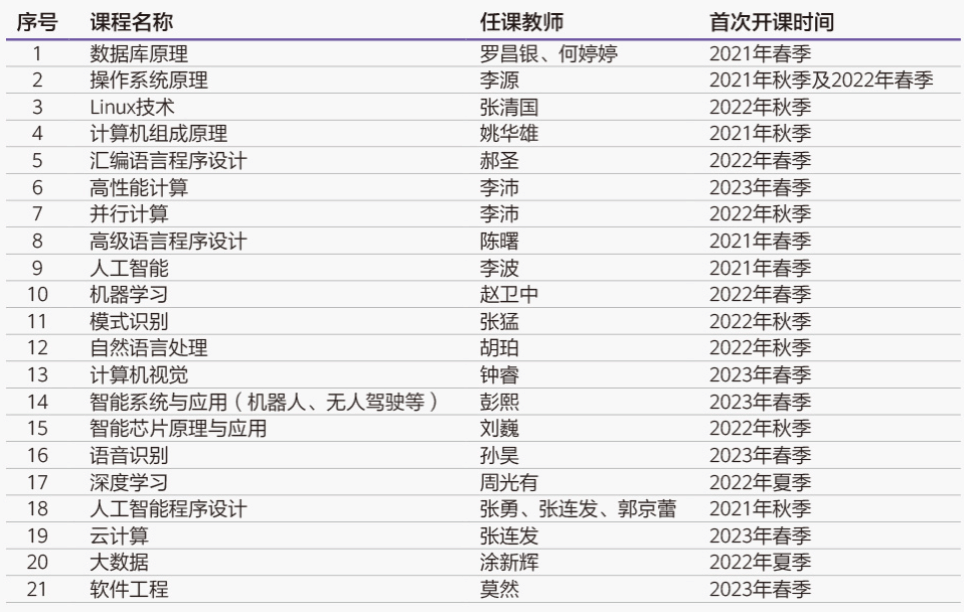 凯发k8官网,凯发k8网址与华为联合课程开发和教学,共计开发了《人工智能》、《云计算》等21门课程(如图1)。这些课程一方面在现有课程体系中引入了深度学习、自然语言处理、计算机视觉等前沿教学内容,另一方面将鲲鹏、昇腾和华为云的知识点与现有的课程(比如“数据库”、”云计算”)相融合,将openGauss数据库、鲲鹏处理器等先进技术融入核心课程,推进课程的“理论课”和“实验课”教学改革,更新“理论和实验教学大纲、教学PPT、实验指导”等教学资源,提升核心课程中华为技术方案的教学与实践质量。