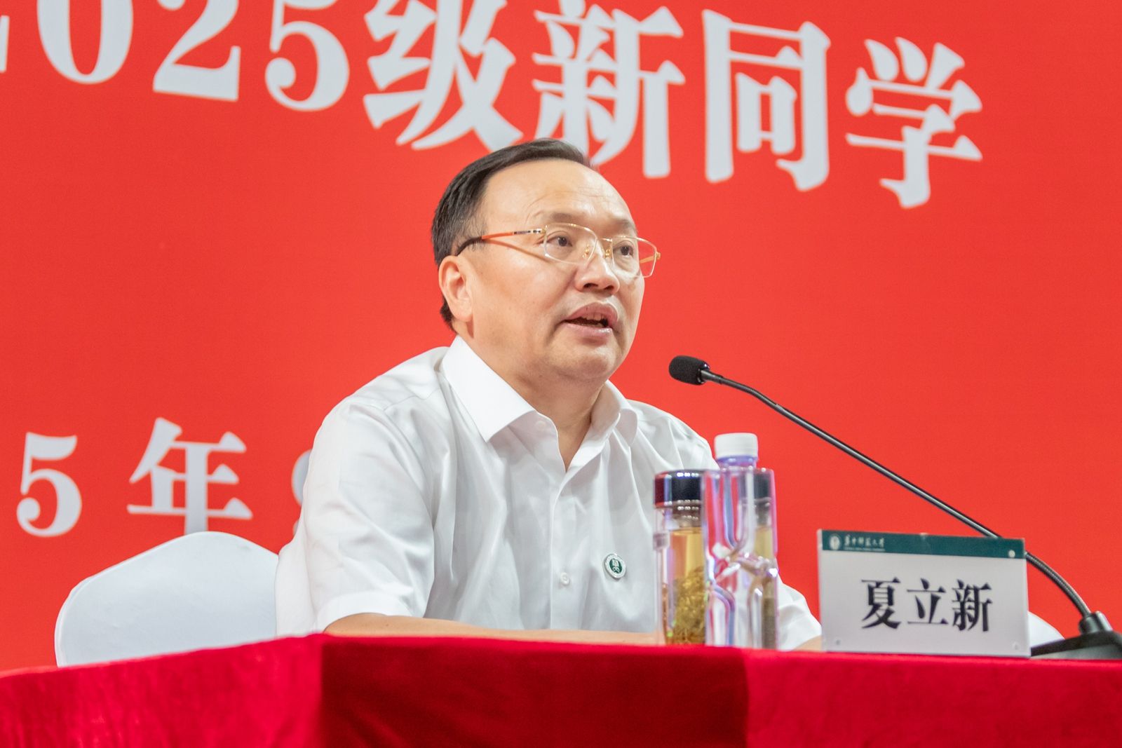 面对世界百年变局与民族复兴关键进程,夏立新强调,唯有认清时代,才能看清自己;唯有融入大势,才能成就大我。他鼓励同学们“在这场波澜壮阔的进程中,找准自己的坐标,与华师同行、与中国同行、与时代同行。”夏立新向全体新生提出四点殷切期望:一是加快身份转换,快速融入大学生活;二是增强知识本领,筑牢成才根基;三是提升综合素养,塑造完整人格;四是培养奋斗精神,书写青春华章。