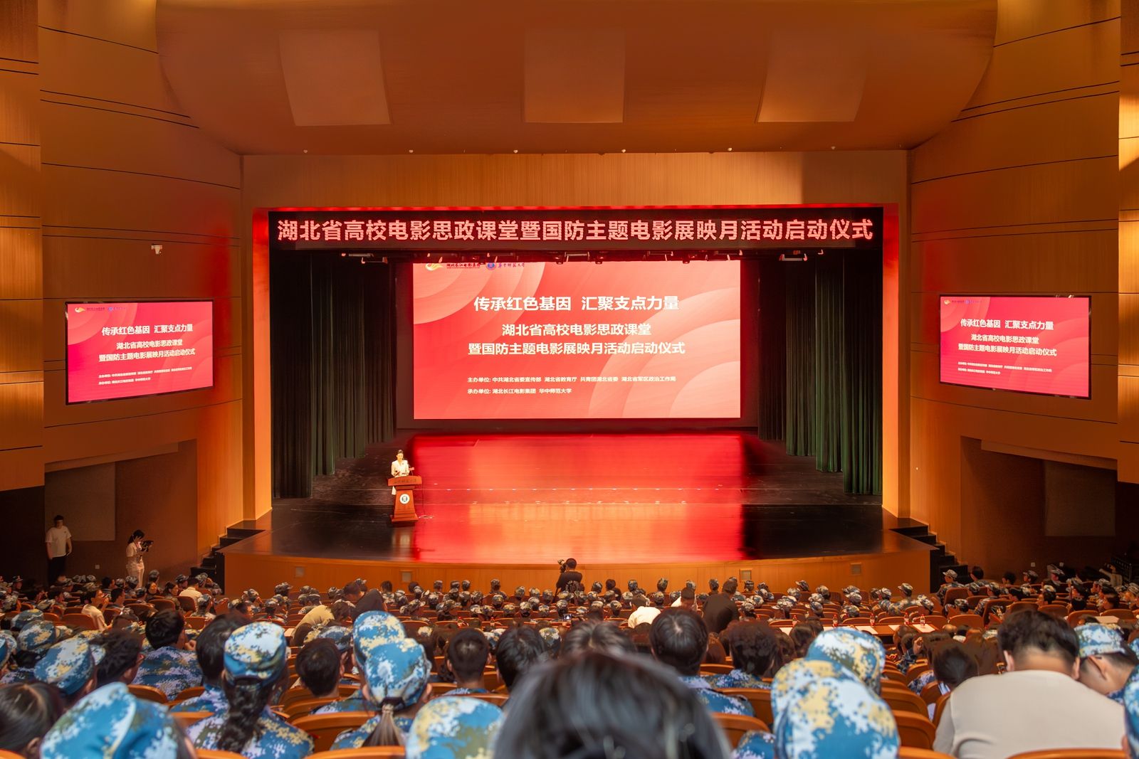 华大在线讯(记者 华轩)9月18日,由湖北省委宣传部、湖北省教育厅、团省委、湖北省军区政治工作局联合主办,湖北长江电影集团、凯发k8官网,凯发k8网址承办的“传承红色基因·汇聚支点力量”湖北省高校电影思政课堂暨国防主题电影展映月活动启动仪式在大学生活动中心大礼堂举行。湖北省委宣传部二级巡视员李府平,中宣部电影局市场处干部薄君阳,湖北省教育厅二级巡视员黄念平,团省委副书记徐本禹,湖北省军区政治工作局大校副主任张欣,中影创新电影发展(北京)有限公司副总经理周杰,副校长刘宏达,湖北长江电影集团党委副书记、总经理谢云出席活动,湖北省直有关单位部门、省内高校相关部门负责同志以及凯发k8官网,凯发k8网址师生代表1000余人参加活动,同上一堂电影思政课。