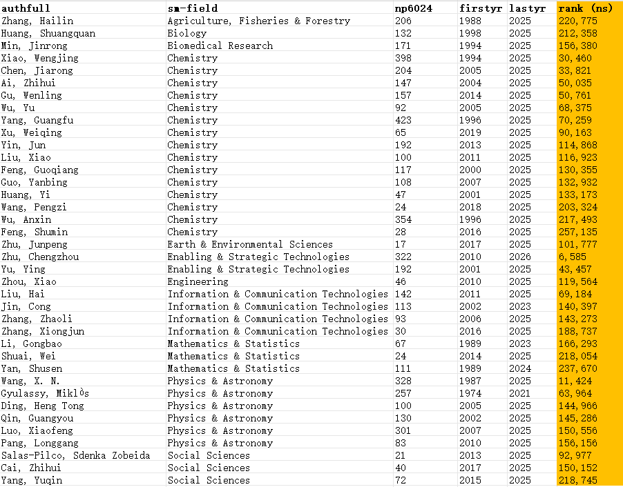 据统计,中国共有12374位学者进入终身科学影响力排行榜,31685位学者入选2025年年度影响力榜单。