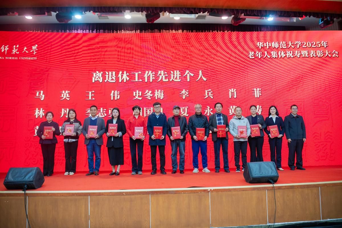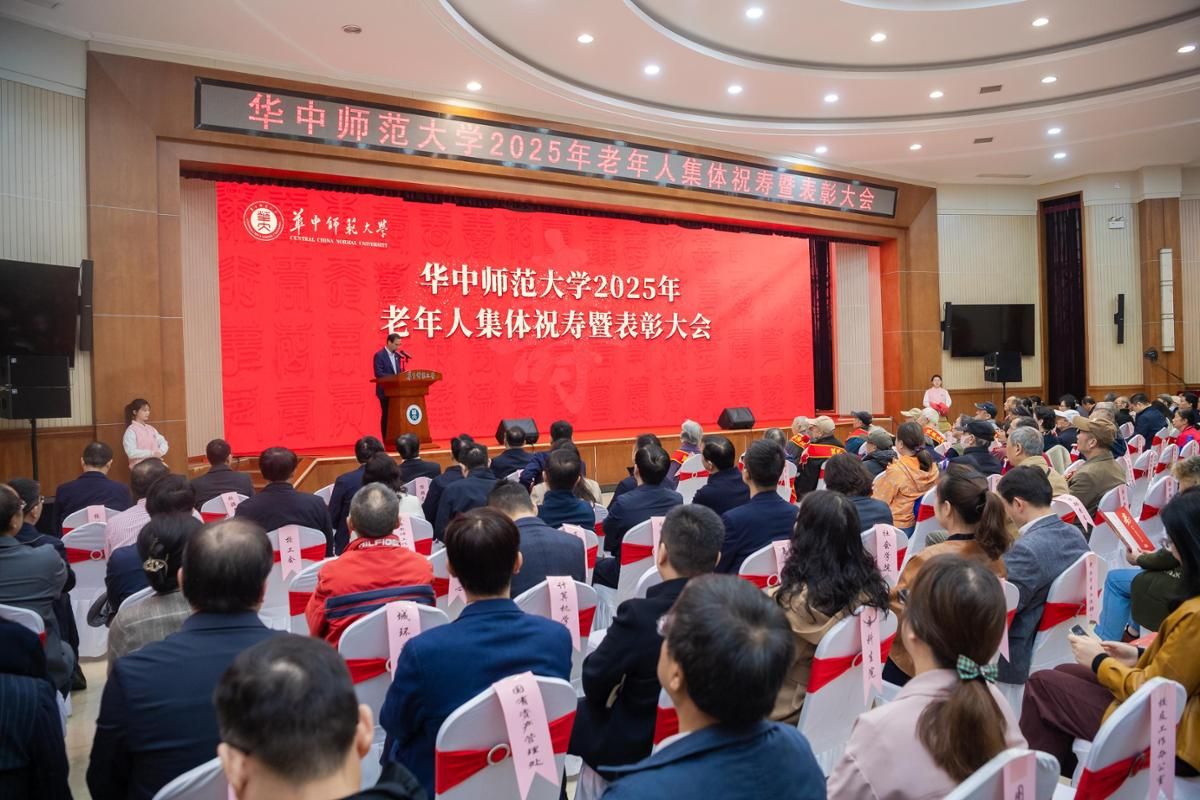 华大在线讯(记者 郝日虹)佳节重阳,情暖桑榆。10月27日,2025年老年人集体祝寿暨表彰大会在科学会堂一楼报告厅举行。103位年满70、80、90岁的离退休寿星代表齐聚一堂,欢度重阳。校党委书记夏立新、校长彭双阶、校党委副书记查道林、副校长李鸿飞、校党委副书记陈迪明、校党委副书记、纪委书记刘继文,副校长周鹏程、刘宏达出席,各二级单位主要负责人、离退休工作联系人,各涉老组织负责同志、受表彰代表和学生代表参加大会。大会由查道林主持。