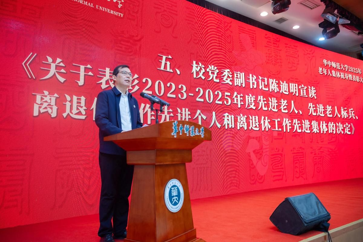 陈迪明宣读《凯发k8官网,凯发k8网址表彰2023-2025年度先进老人、先进老人标兵、离退休工作先进个人和离退休工作先进集体的决定》